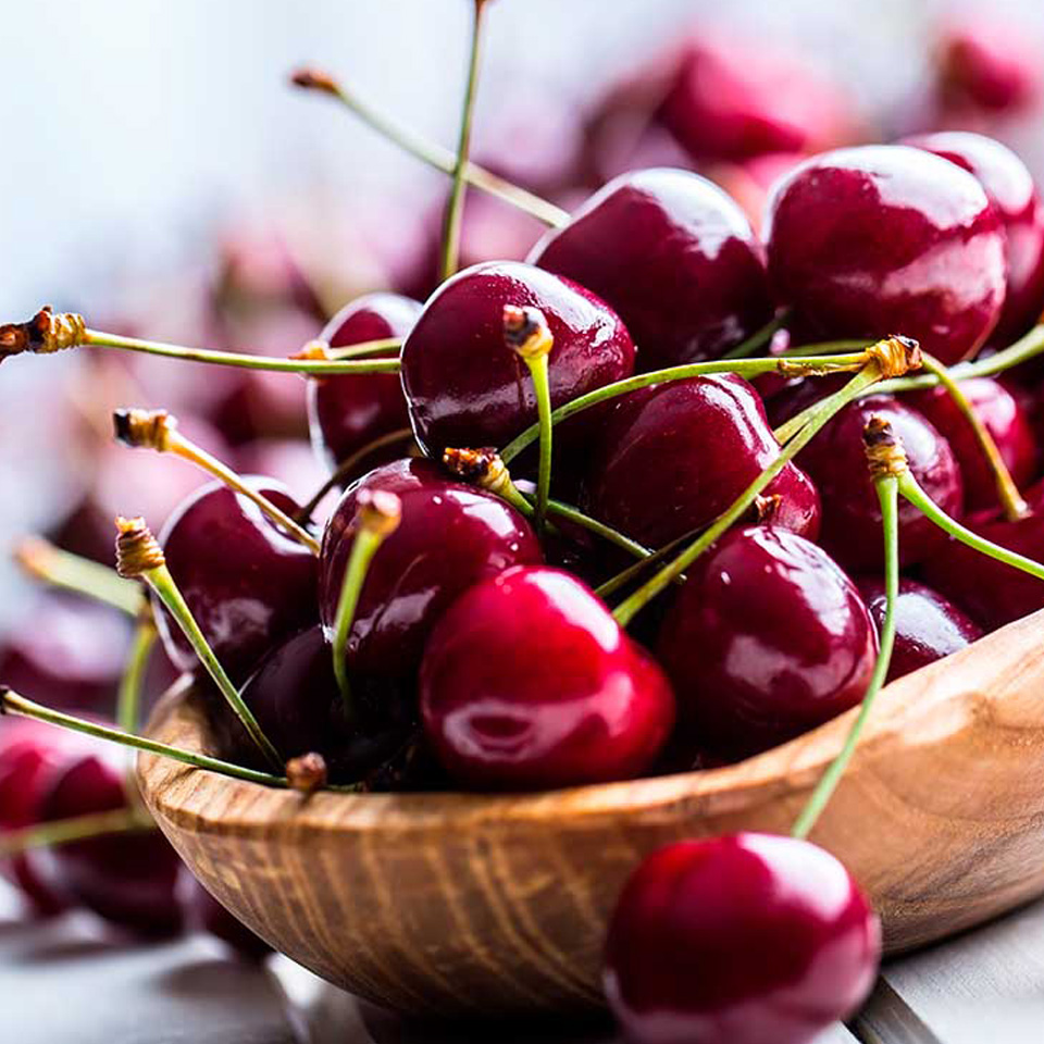 Las vitaminas y los minerales saludables están naturalmente presentes en el jugo de nuestras cerezas. Pero nuestros agricultores las hacen únicas: les permiten desplegar pacientemente su aroma magnífico y su dulzura completa y luego las cosechan amorosamente a mano. Apariencia redonda en forma de corazón, rojo oscuro brillante a violeta-negro con tallos muy largos, firmes, crujientes y jugosas.